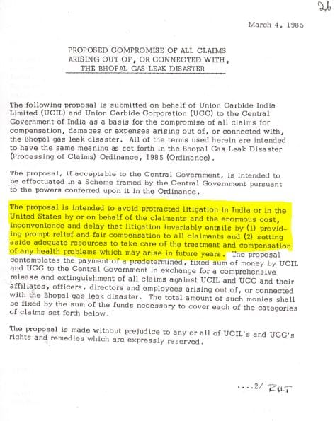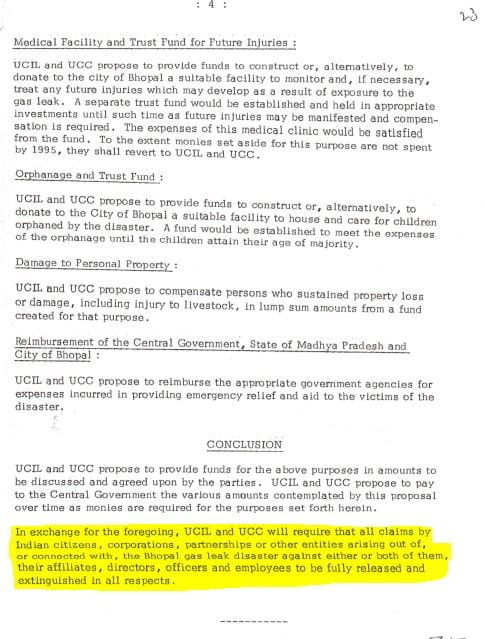 The clincher to the settlement is that all claims against any of the perpetrators or those associated with Union Carbide (both UGIL, which was the Indian branch and UGC, the global parent company) would be put away.