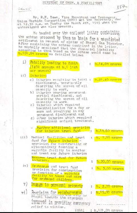 These figures are the total amount Union Carbide was willing to spend in terms of compensation: a total budget of Rs. 101.08 crore.