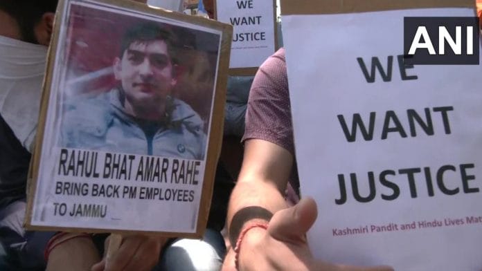 Protesters want his killers brought to book, as well as relocation for Kashmiri Pandit employees who got jobs under the Prime Minister’s package.