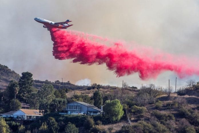 Seven neighboring states, the federal government and Canada and Mexico have rushed aid and firefighters to California, bolstering aerial teams dropping water and fire retardant on the flaming hills and crews on the ground attacking fire lines with hand tools and hoses.