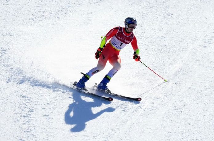 Trailing after the first interval time, the Swiss speedster flipped a switch to cross the finish line in one minute 6.80 seconds, 0.05 seconds ahead of Germany’s Andreas Sander with Norway’s Aleksander Aamodt Kilde in third.