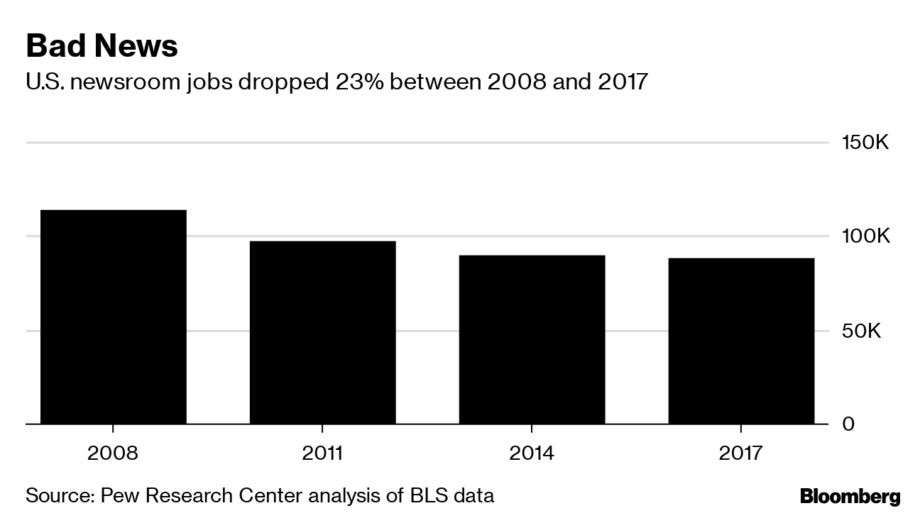 About 88,000 people worked in U.S. newsrooms in 2017, according to Pew Research Center.