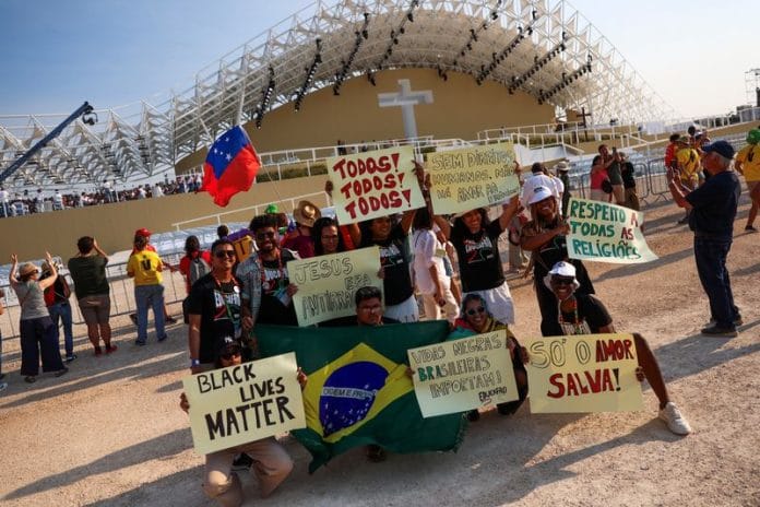 “The Church has great power to turn the tables,” said Braga, who at Saturday’s evening vigil with Francis wore a T-shirt saying “Jesus was Black”.