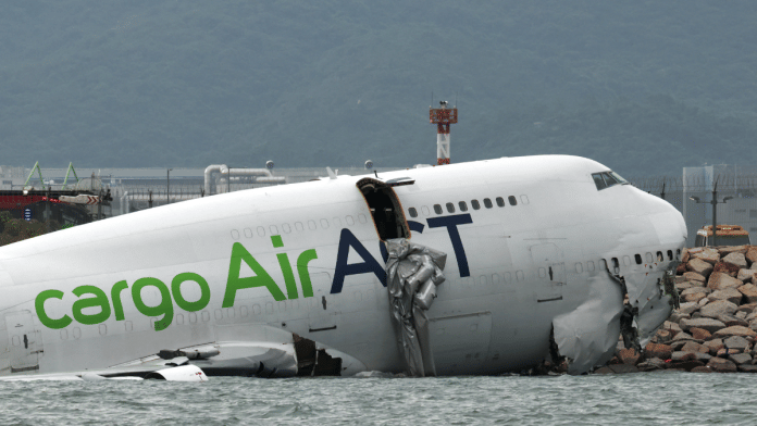 The Boeing 747 involved in the deadliest airport incident in the financial hub in more than 25 years also fell into the water and was partially submerged, but all four crew members on board escaped.