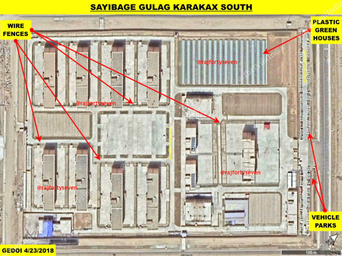 According to satellite images, Hotan has at least four large camps located very close to each other. The satellite imagery, which also allows us to measure the size of buildings and number of floors, indicates that the Hotan gulags may hold as many as 90,000 inmates.
