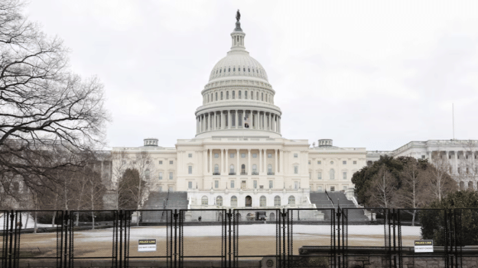 Security fencing surrounds the U.S. Capitol ahead of the State of the Union address, in Washington