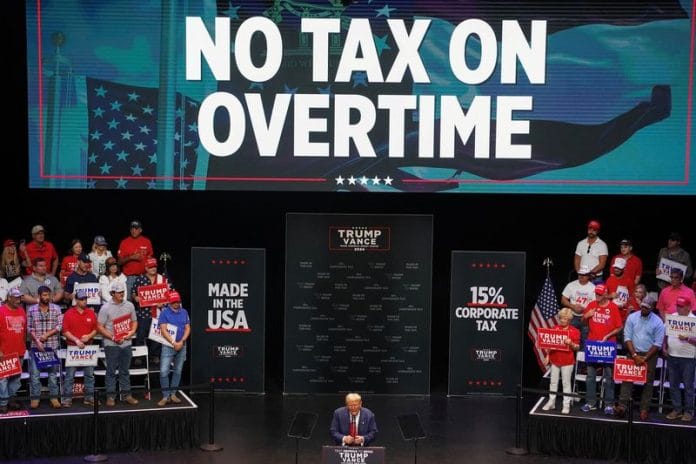 Trump said on Sept. 12 that if he is elected he will end all taxes on overtime pay as part of a wider tax cut package.