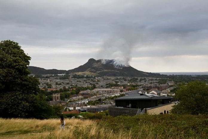 EDINBURGH (Reuters) -A wildfire broke out on Arthur’s Seat, the extinct volcano overlooking Scotland’s capital Edinburgh, on Sunday, spreading extensively across the landmark which is popular with walkers and tourists and producing smoke visible from miles around.