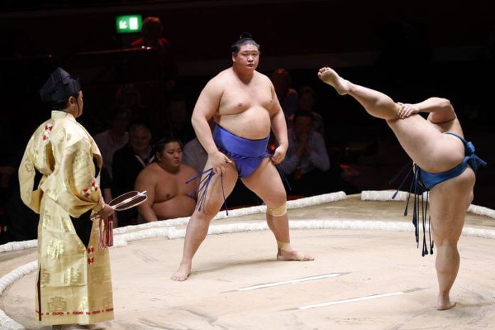 LONDON (Reuters) -Japan’s elite sumo wrestlers slapped, thrust and flipped their way through the first evening of their five-day exhibition tournament in London’s Royal Albert Hall on Wednesday, to the delight of a full house of spectators.