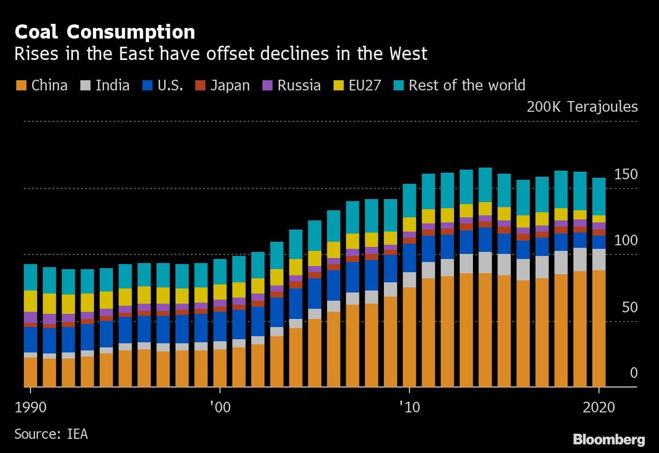 While COP26’s U.K. hosts had aimed to “consign coal to history,” many nations remain deeply dependent on burning the fuel that represents the biggest single obstacle to limiting global warming to 1.5 degrees. The energy crisis has underscored the importance of secure supplies and driven up coal prices amid a shortage of natural gas. China is pressing coal producers to increase output to ease shortages. India burns more coal than Europe and the U.S combined to produce about 70% of its electricity.