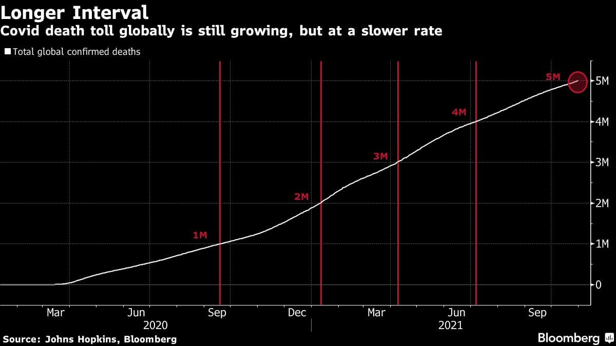More than 5 million people worldwide have died from Covid-19 less than two years after the novel pathogen was first documented, despite the arrival of vaccines that have slashed fatality rates across the globe.