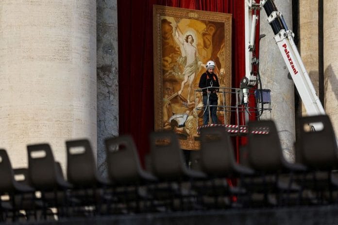 At 8:45 a.m. (0745 GMT) on Thursday, ushers known as papal gentlemen will carry the coffin in procession out of the basilica and place it on the steps facing St. Peter’s Square. The faithful will pray the rosary for about 45 minutes.