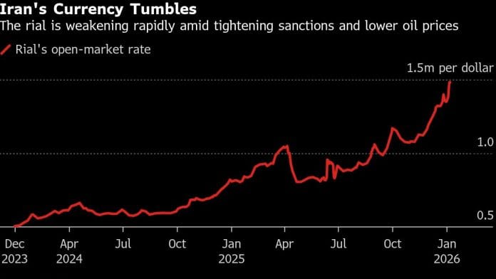 The rial has been under pressure for years due to Western sanctions and systemic corruption that’s undermined confidence in the economy. The rial slumped by around 45% against the US dollar in 2025, according to Bonbast.com, as Iranians converted savings into foreign currencies, gold or property.