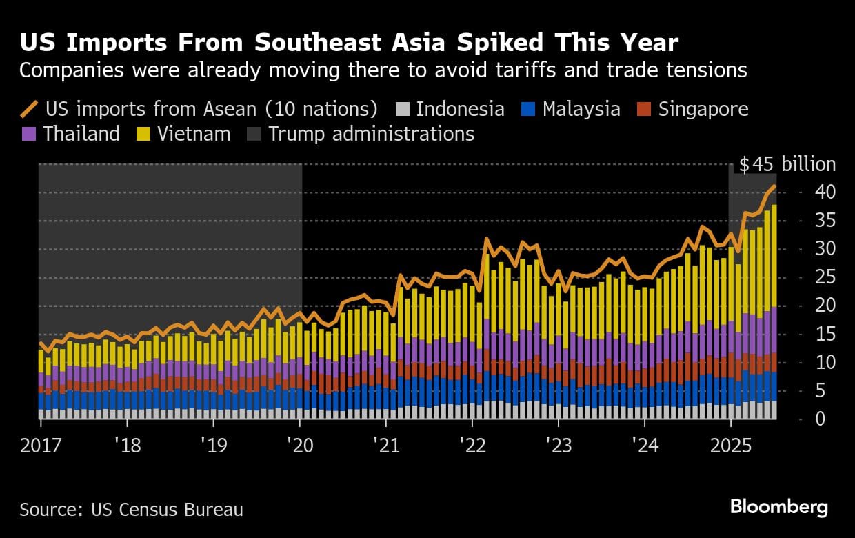 The effect on trade flows from Southeast Asia could potentially be larger, as exports from Vietnam, Thailand and other places have jumped this year, partly due to companies trying to get ahead of US tariffs. If those tariffs were to be removed or lowered, it could prompt another flood of goods.