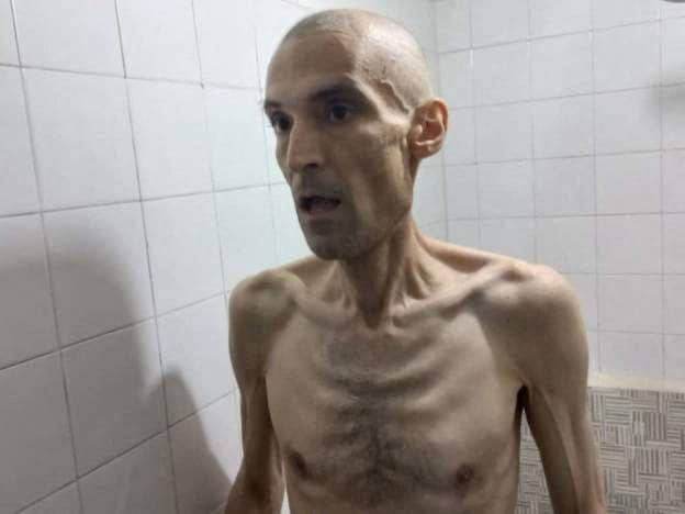 Images of Meysami show him curled up on what looks like a hospital bed, and another standing, his ribs protruding.