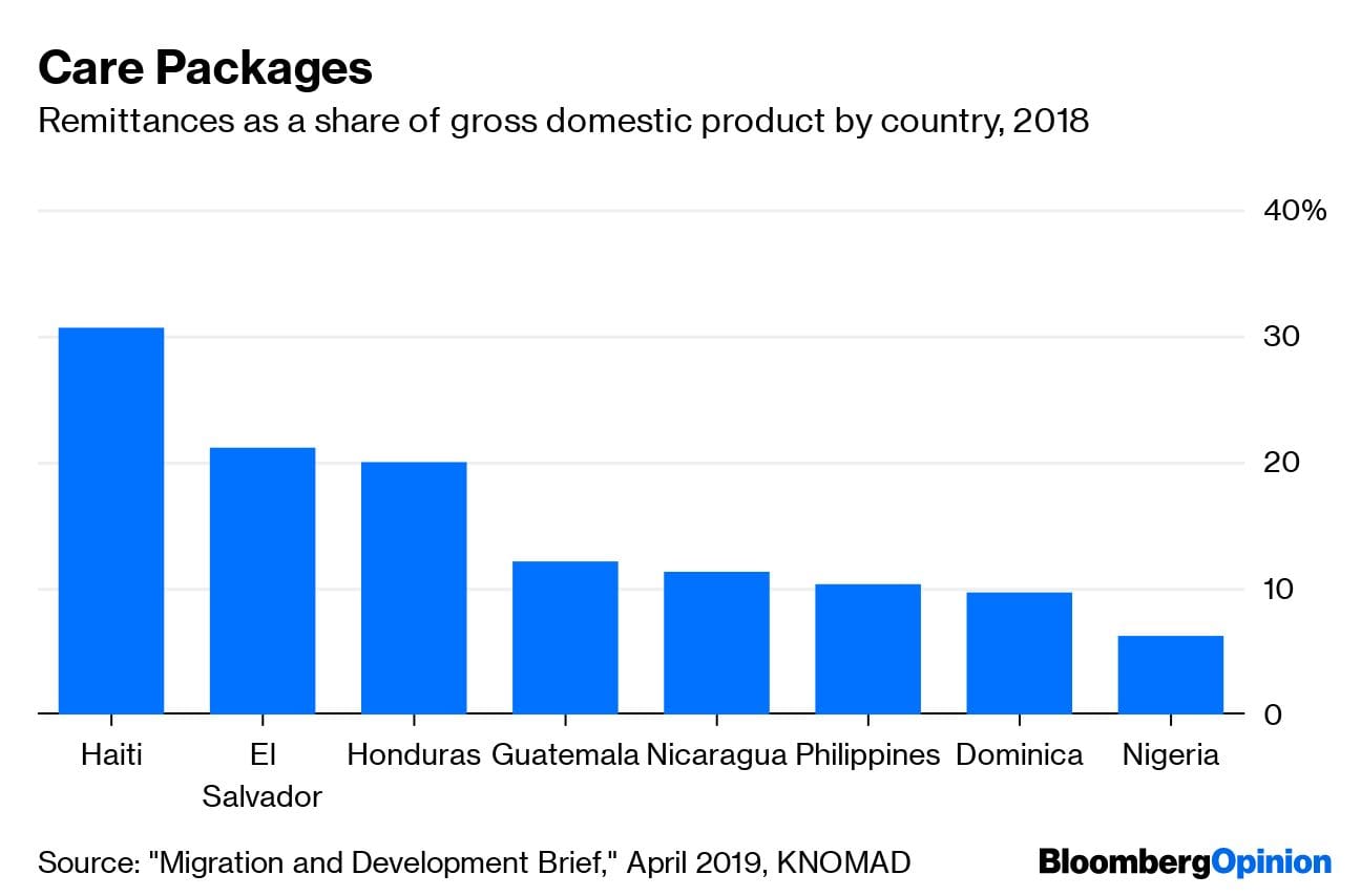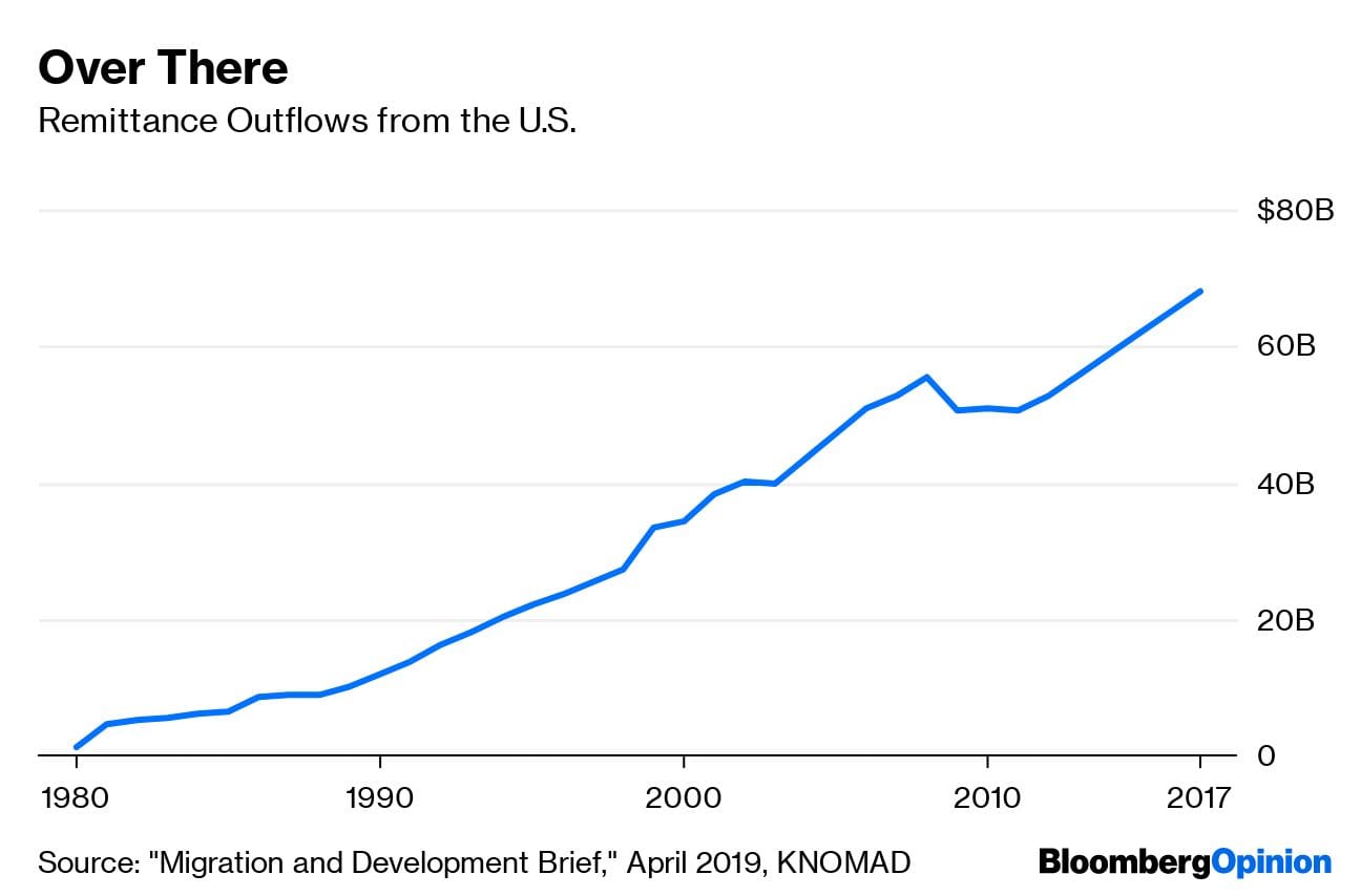 The leakage of money represented by remittances is not yet a major burden on the U.S. economy. But it does reduce the economic benefit that accrues to native-born Americans from allowing in migrants from countries like Honduras, Guatemala and El Salvador, and could thus fan the flames of nativist sentiment. And it probably doesn’t do much to make those countries richer, which in the long run would reduce migration pressure.