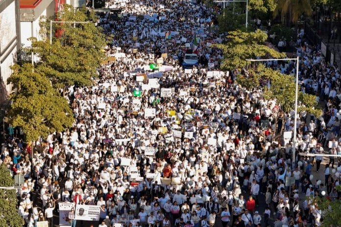 “People are coming out to demonstrate, twice in this last week, because things are getting out of control,” said Apolinar Garcia, one of the protesters at a march in Culiacan, the capital of Sinaloa state, on Sunday. Demonstrators wearing white shirts waved signs, chanted “We want peace!” and burned effigies of local politicians.