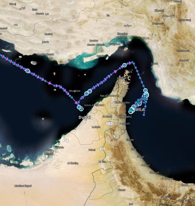Wila, a chemicals and oil products tanker sailing under the Liberian flag, has been floating off the eastern coast of the United Arab Emirates for about a month, according to ship-tracking data compiled by Bloomberg. Its previous stop was around July 8 near the Iraqi oil terminal of Al Basra, where its draft increased, indicating it picked up a shipment, according to the data.