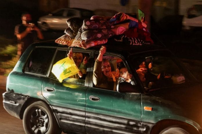 Celebratory gunfire rang out across parts of Beirut as the clock struck midnight on Thursday, the time the ceasefire was set to go into effect. For around half an hour, the sound of explosions from rockets fired in celebration could also be heard, witnesses said.