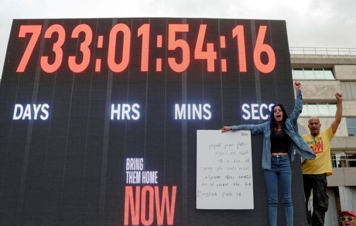 Einav Zaugauker, whose son Matan is one of the last hostages, rejoiced in Tel Aviv’s so-called Hostages Square, where families of those seized in the Hamas attack that sparked the war two years ago have gathered to demand their return.