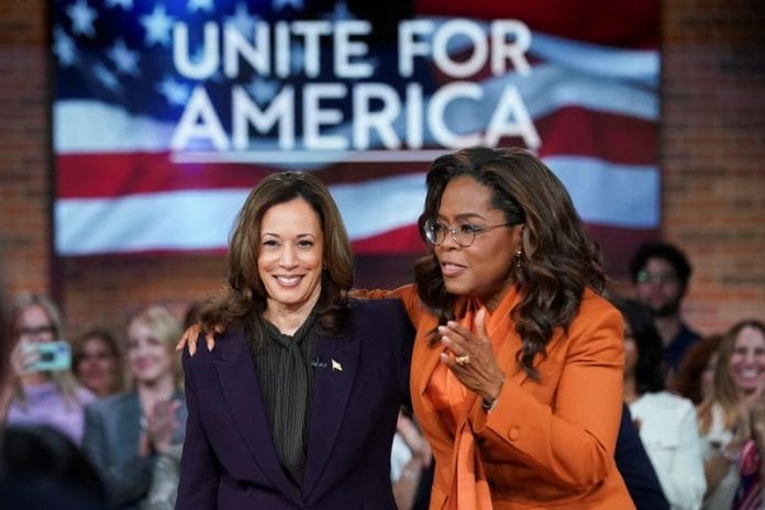 Winfrey hosted the “Unite for America” event with activist group Win with Black Women, that aimed to register people to vote and bolster Harris in states such as Pennsylvania, Georgia and Michigan that are set to decide the Nov. 5 election.