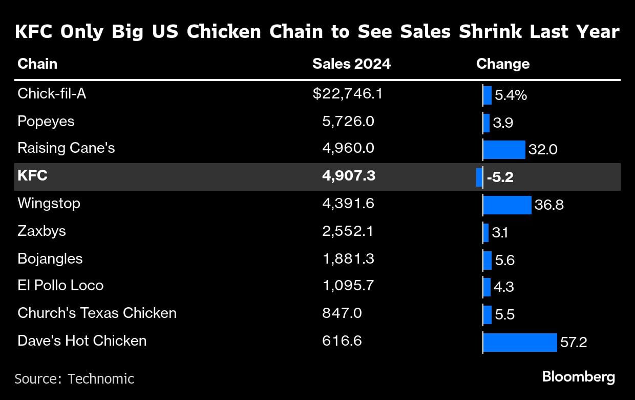 But KFC? “Invisible” and “irrelevant,” according to one of its leaders. It was the only major chicken chain where sales fell last year.