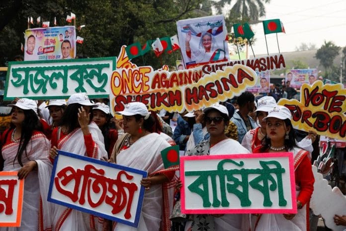 DHAKA (Reuters) – Utility poles across Bangladesh are festooned with campaign flyers carrying pictures of general election candidates, most of them from the ruling party, as an opposition boycott looks set to usher Prime Minister Sheikh Hasina to a fourth straight term.