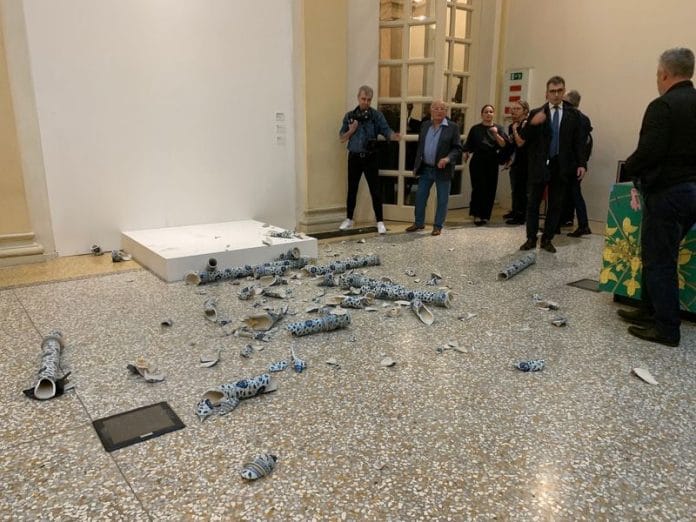 The sculpture targeted was the artist’s large blue and white ‘Porcelain Cube’, the spokesperson said.