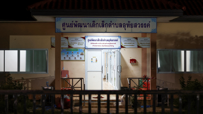 From there he drove to the administrative complex where the Uthai Sawan Child Development Centre, a pink, one-storey building, is located next to a government office.
