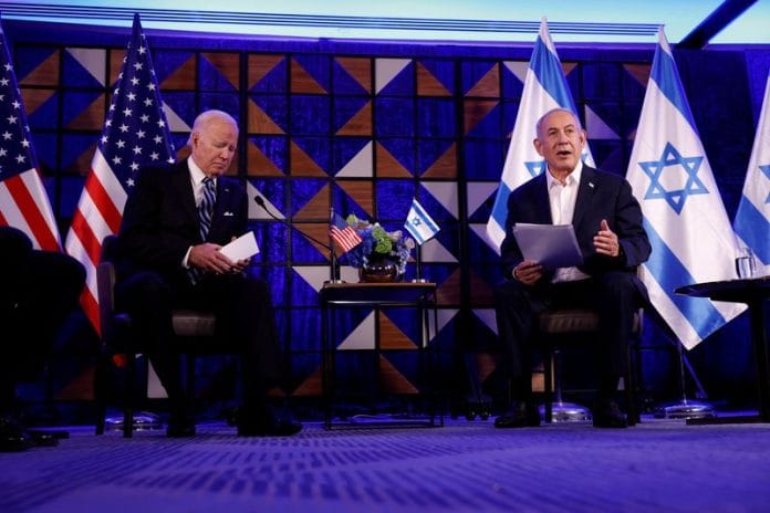 TEL AVIV (Reuters) – Israeli Prime Minister Benjamin Netanyahu thanked visiting U.S. President Joe Biden on Wednesday for his “unequivocal support” in the Gaza war and gave an updated death toll from the Hamas cross-border attack that triggered it.