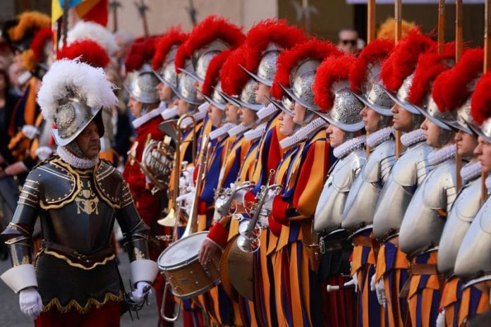 Known to tourists in St Peter’s Square for its colourful yellow, red and blue uniforms and ceremonial halberd weapons, the “world’s smallest army” comprises Swiss Catholics aged between 19 and 30 and it remains all male.