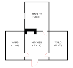 The building consisted of two windowless cells, with a central kitchen and a back room for the jailer. It was located in a yard surrounded by a three-metre-high log wall, and was built by men from the 80th Regiment at a cost of £420.