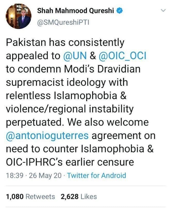 — Shah Mahmood Qureshi (@SMQureshiPTI) May 26, 2020
