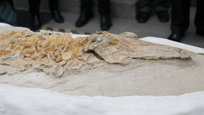 Lima: Paleontologists in Peru unveiled on Wednesday the fossilized skeleton of an ancient, dolphin-like creature estimated to be between 8 and 12 million years old.