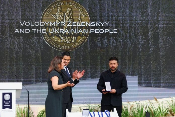 The Roosevelt Foundation said the 2026 prize was given to Zelenskiy and the Ukrainian people in “recognition for their courageous struggle for our freedom and democracy under exceptionally difficult circumstances.”