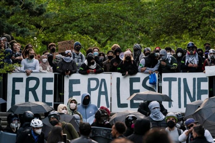 The state chapter of the American Civil Liberties Union criticized the move, saying “calling heavily armed police on student political expression is an inherently dangerous choice.” The school’s Students for Justice in Palestine group posted video showing protesters thrown to the ground and faculty members among those arrested.