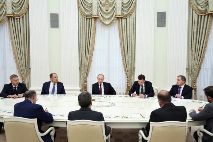 Putin received Iranian Foreign Minister Abbas Araqchi in the Kremlin on Monday alongside his Foreign Minister Sergei Lavrov, Kremlin foreign policy aide Yuri Ushakov and Igor Kostyukov, the head of Russia’s GRU military intelligence agency.