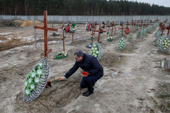KYIV (Reuters) – Ukraine’s president said on Thursday the past year had been “the most horrific” in the lives of many residents of the Kyiv region, where Russian troops are accused of committing war crimes before withdrawing a year ago.
