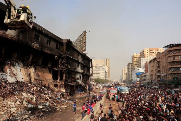 But the flames spread rapidly, leaping through a structure that housed 1,200 stores in Karachi’s historic centre.