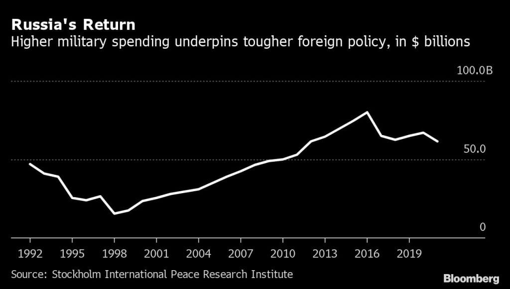 Maybe, except Russia’s military has improved since 2014, too. Says Yohann Michel, who covers land warfare for the Military Balance, the tome of comparative military data the IISS has published since 1959: “The capabilities gap has probably grown.”- Bloomberg