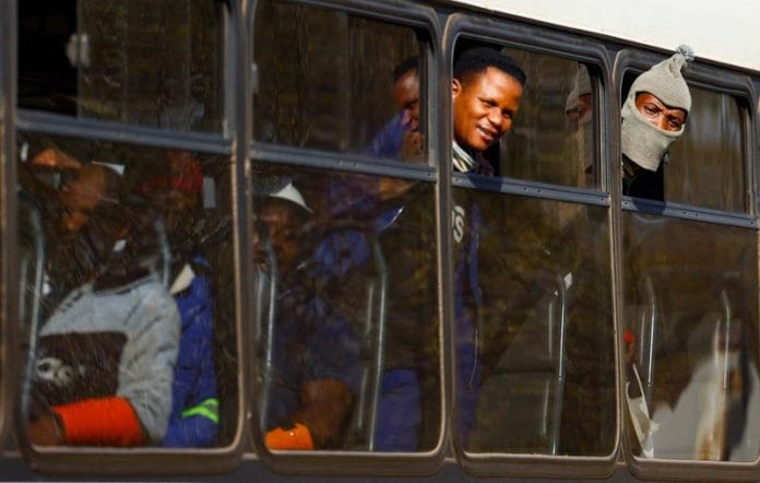 Journalists were barred by security guards from getting near to the mine shaft, but a Reuters reporter saw some of the miners, looking tired but in good health, walk to the perimeter of the company grounds and board buses.