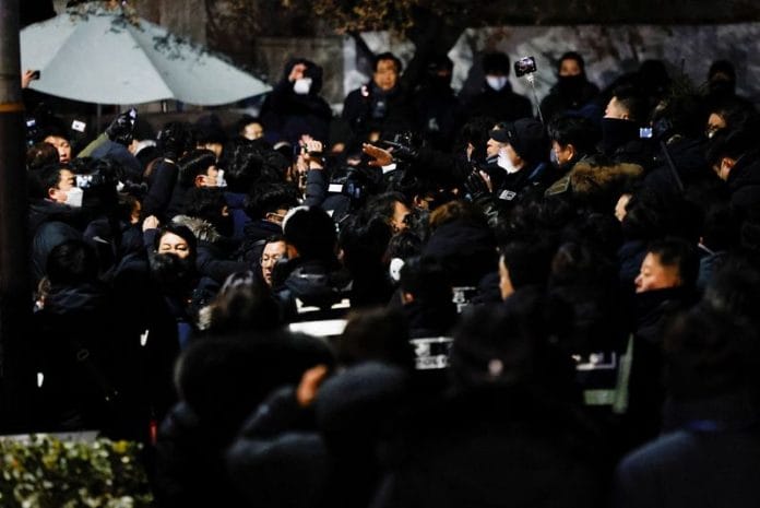 Video footage showed investigating officers trying to push through a crowd of Yoon’s supporters gathered outside his hillside villa, where he has been holed up for weeks behind barbed wire and a small army of personal security.