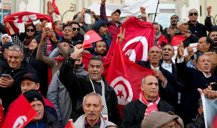 “We are here to rescue Tunisia from traitors and colonial lackeys,” protester Saleh Ghiloufi said.