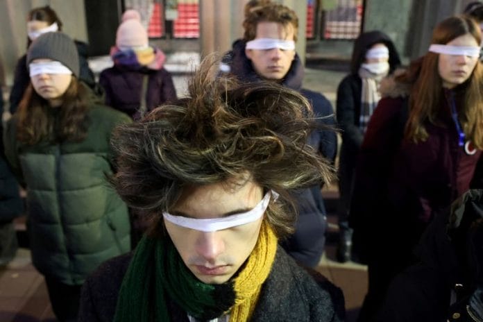 BELGRADE (Reuters) – Tens of thousands of anti-government protesters in Belgrade on Sunday switched on the lights on their mobile phones and stood in silence for 15 minutes to commemorate victims of a railway station roof collapse for which they blame authorities.