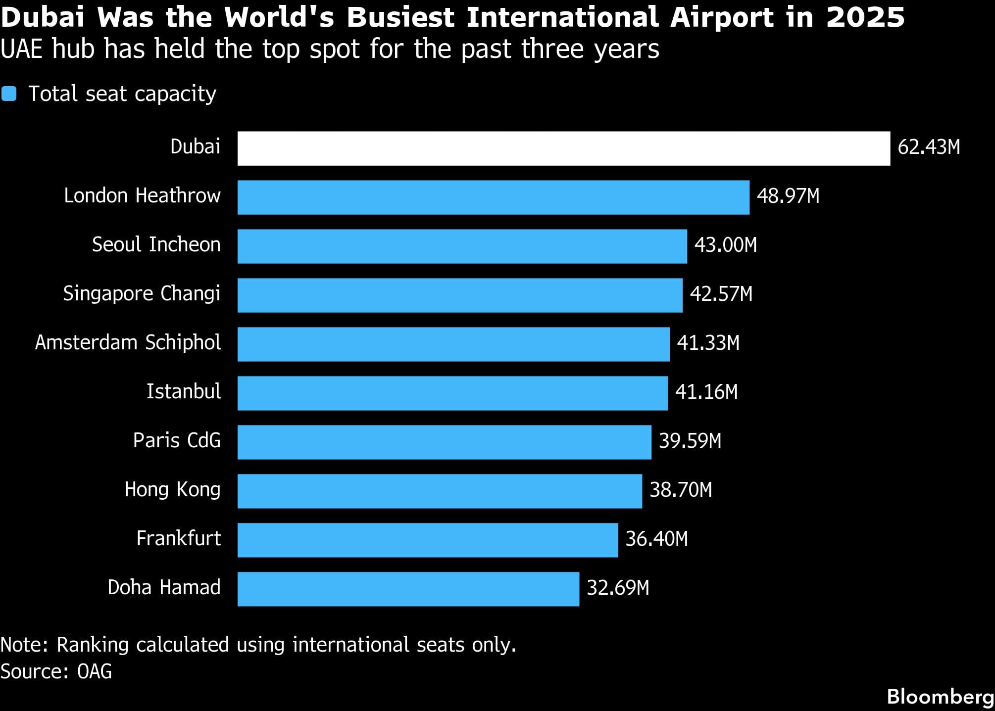 The Middle East hub model saw Emirates and Etihad enjoy massive growth in recent decades. Emirates carried 55.6 million passengers in 2025, more than quadruple the number ferried just 20 years earlier.