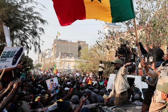 Faye and thousands of opposition supporters milled around a field in Dakar’s Yoff neighbourhood on Tuesday, waving Senegalese flags and photos of Sonko, who arrived in the field atop a vehicle in a convoy, greeted by cheering supporters.