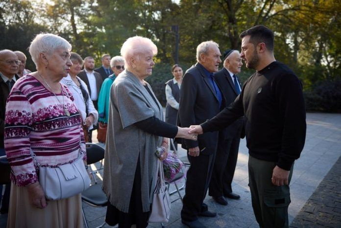 “It is very important to always remember history, not to forget. Because ‘Never again!’ are not empty words,” President Volodymyr Zelenskiy said after leaving a candle at a monument of a Jewish menorah erected at the site to honour the victims.