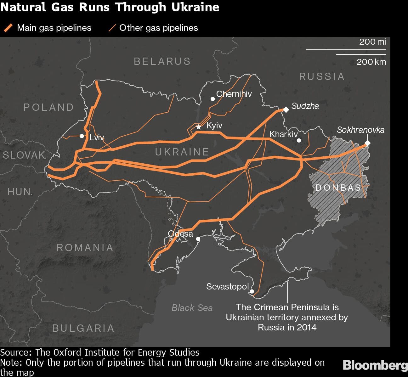 Kyiv had already warned Russia that the actions of its troops and occupiers in the Luhansk region of eastern Ukraine could end up halting about a third of the gas it transits to Europe. Ukraine’s gas network manager said it can’t meet contractual obligations via the Sokhranivka border point, but said flows could be rerouted via Sudzha.
