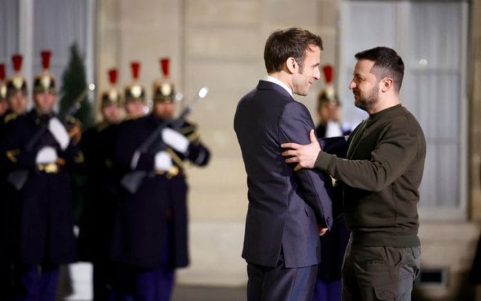 PARIS (Reuters) – Ukrainian President Volodymyr Zelenskiy and French President Emmanuel Macron will travel together to attend a European Union summit later on Thursday, Macron’s office said in a statement.