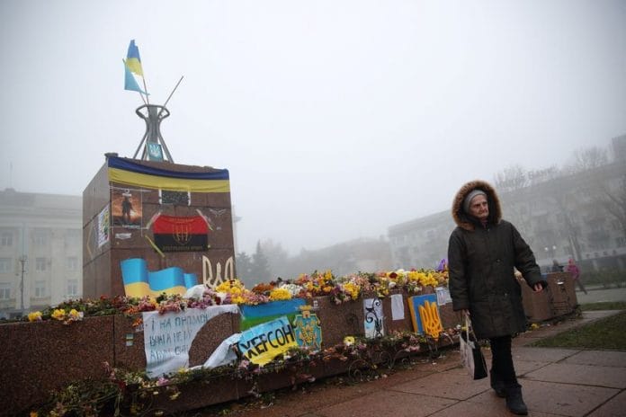 Ukrainian presidential adviser Mykhailo Podolyak said Russia was bombarding Kherson from across the Dnipro River, now that its troops had fled.